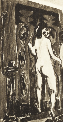 Ernst Ludwig Kirchners Badende im Raum (1909–10/nach 1926) gewährt intimen Einblick in den Atelier-Kosmos der BRÜCKE während der frühen Schaffensjahre der Künstlergruppe in Dresden. Zugleich steht das Gemälde exemplarisch für die – auch konservatorisch relevante — Problematik der nachträglichen Umgestaltung von Schlüsselwerken durch den Künstler. ⇢